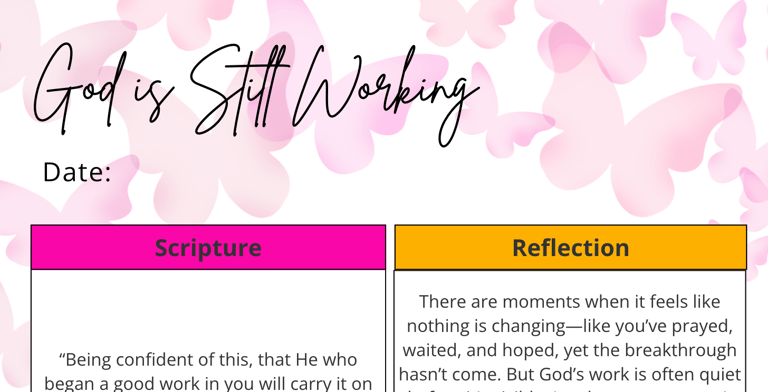 This short devotional is a gentle reminder that God is still working—even in the waiting. Designed to encourage your heart, renew your faith, and help you trust God’s process when progress feels slow. Through scripture, reflection, and prayer, you’re invited to rest in the truth that what God started in you, He will complete.